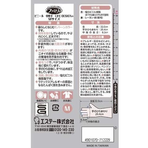 【ファミリー ライフデザイン ビニール手袋 中厚手 指先強化 Mサイズ グレーの商品詳細】