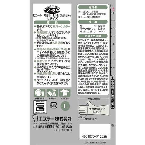 【ファミリー ライフデザイン ビニール手袋 中厚手 指先強化 Lサイズ グレーの商品詳細】