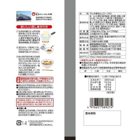| ★めん 小麦粉(国内製造)、卵白粉、食塩、小麦たん白/かんすい、(一部に卵・小麦を含む) ★スープ しょうゆ、食塩、水あめ、植物油脂、砂糖、かつお節エキス、香味油、香辛料、こんぶエキス、チキンガラスープ、にぼし粉末/調味料(アミノ酸等)、着色料(カラメル)、香料、(一部に小麦・大豆・鶏肉を含む) |