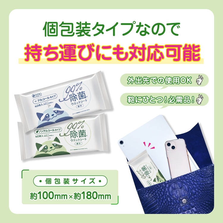 【iSDG 除菌ノンアルコールウエットシートの商品詳細】