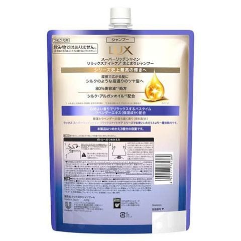 (LUX LAX 洗髪料 ヘアケア 夜間美容 ラベンダーエキス配合(保湿成分) 摩擦 ダメージケア まとまり シルク・アルガンオイル配合(補修成分) つめかえ 詰め替え 詰替 指通り シルク髪 広がる髪 毛先)
