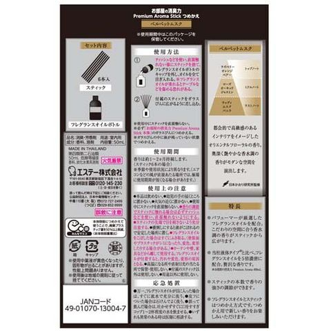 ※必ず「お部屋の消臭力 Premium Aroma Stick 本体」のガラスびんにつめかえる。