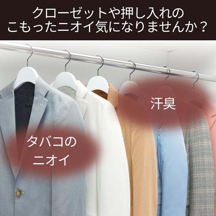 ●大容量・大面積でありながら邪魔にならない形状で、小さくなる備長炭ゼリーがクローゼットや押入れなどの大収納空間のニオイをしっかり脱臭します。