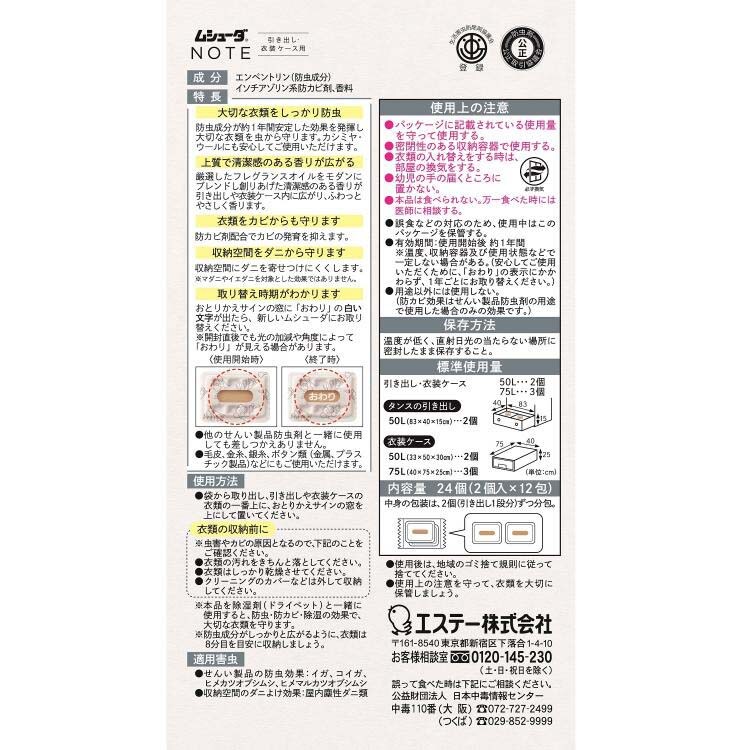 ムシューダ ノート 引き出し用 衣類防虫剤 フリージア (24個入×5セット)のレビュー