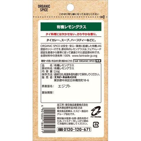 S&B ORGANIC SPICE 袋入り有機レモングラス (2.6g×6セット)