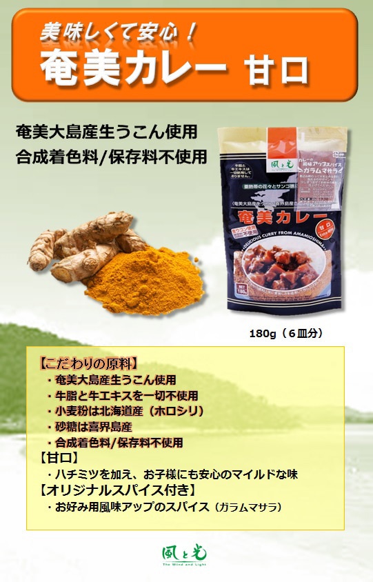 ●奄美大島で手間隙かけて土壌改良を行い、栽培した生ウコンを使ったカレールウです。