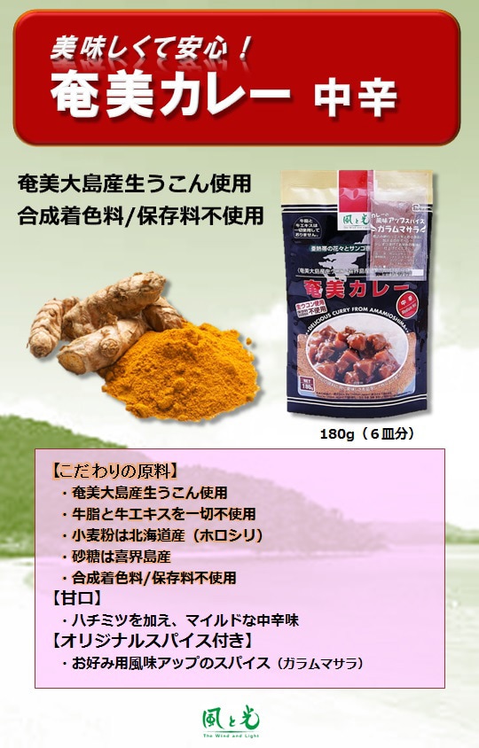 ●奄美大島で手間隙かけて土壌改良を行い、栽培した生ウコンを使ったカレールウです。