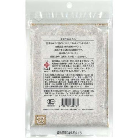 | 有機白いりごま(国内製造)、有機砂糖、有機味噌パウダー、食塩、(一部にごま・大豆を含む) |