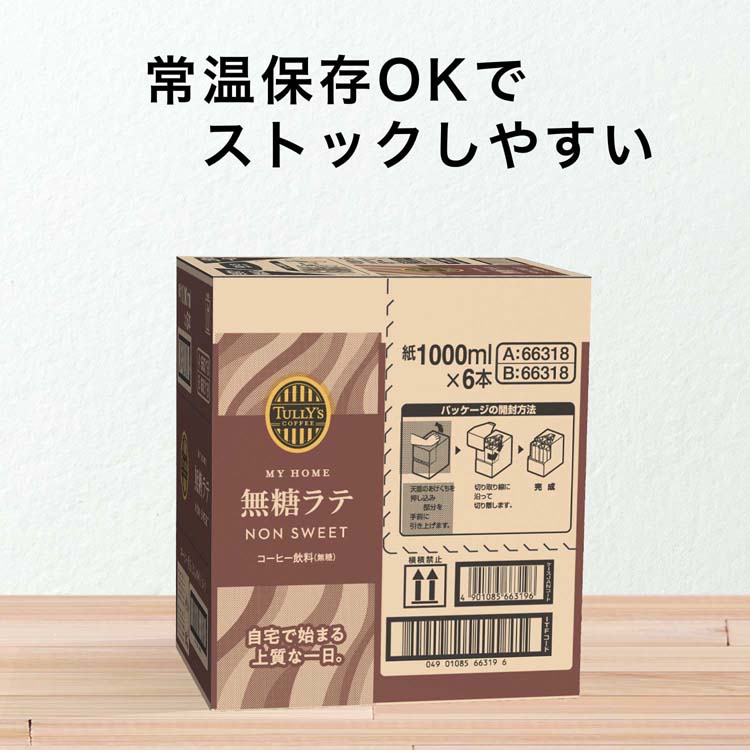 タリーズコーヒー マイホーム 無糖ラテ キャップ付き紙パック (6本入×2セット(1本1L))