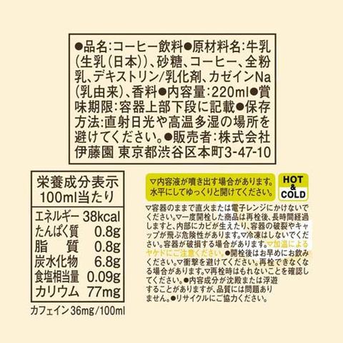 | 牛乳(生乳(日本))、砂糖、コーヒー、全粉乳、デキストリン/乳化剤、カゼインNa(乳由来)、香料 |