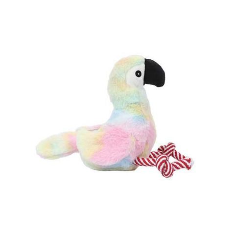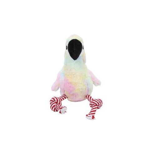 ●ふわふわのパステルボディに、しっかり噛める大きめくちばし。ゆらゆら揺れるロープが追いかけたくなる動きを演出。くわえてブンブン、転がしてダッシュ、抱えてまったり。