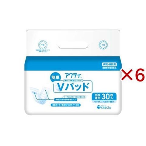 アクティ 紙パンツ用尿とりパッド簡単Vパッド (30枚入×6セット)