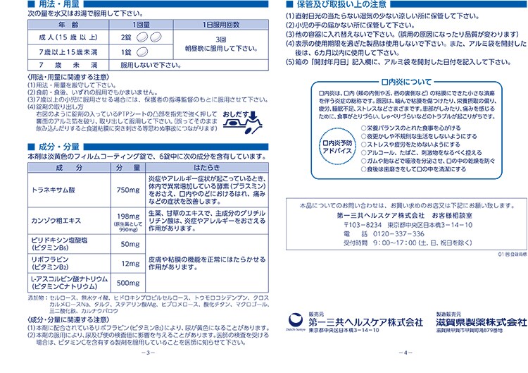 成分(15歳以上):2錠/3回(朝昼晩)
