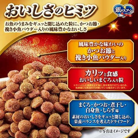【銀のスプーン 贅沢うまみ仕立て 15歳頃からまぐろ・かつお・煮干し・白身魚・しらす味の商品詳細】