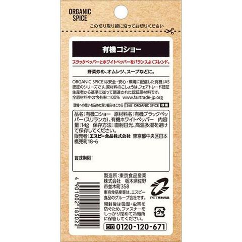 【S&B ORGANIC SPICE 袋入り有機コショーの商品詳細】