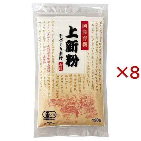 ●杵びき製粉有機上新粉は石臼と杵を使って粉の温度を上げずに粉砕・製粉し、粒子の細かい上新粉に仕上げております。