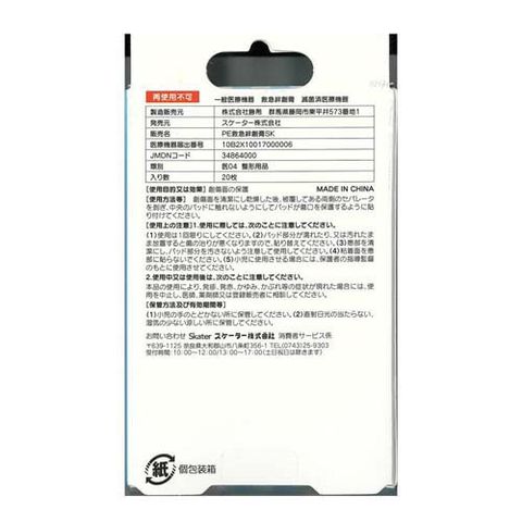 | 粘着テープ:ポリエチレン、アクリル系粘着剤、パッド:不織布、ポリエチレン、セパレーター:紙 |