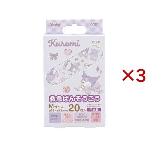 キャラクターばんそうこう 救急絆創膏 子供 サンリオ クロミ ビックリボン QQB1 (20枚入×3セット)