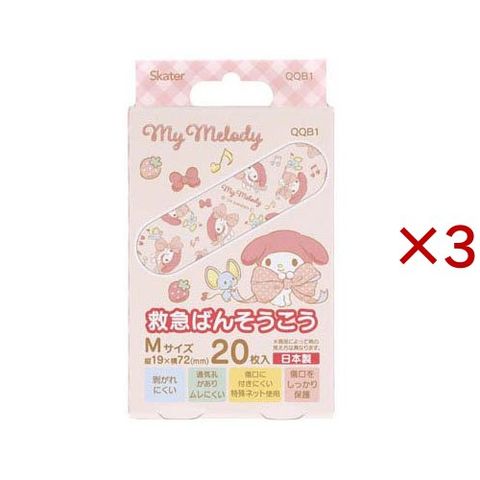 キャラクターばんそうこう 救急絆創膏 子供 サンリオ マイメロディ ビックリボン QQB1 (20枚入×3セット)