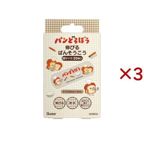 伸びるばんそうこう ぴたっと伸縮 キャラクター 子供絆創膏 M パンどろぼう QQBG2 (20枚入×3セット)