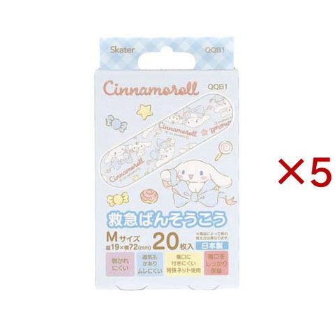 キャラクターばんそうこう 救急絆創膏 子供 サンリオ シナモロール ビックリボン QQB1 (20枚入×5セット)