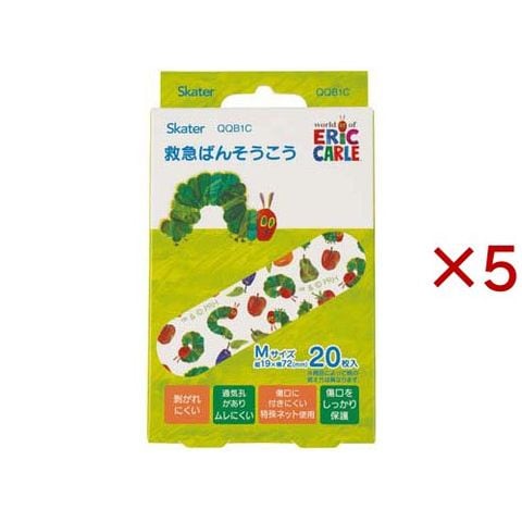 子供絆創膏 キャラクター キッズ ばんそうこう はらぺこあおむし QQB1C (20枚入×5セット)