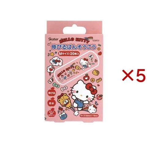 伸びるばんそうこう ぴたっと伸縮 キャラ 子供 絆創膏 M ハローキティ 大好き QQBG2 (20枚入×5セット)