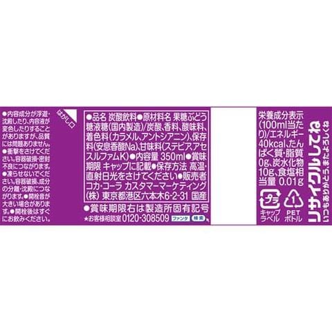 | 果糖ぶどう糖液糖(国内製造)/炭酸、香料、酸味料、着色料(カラメル、アントシアニン)、保存料(安息香酸Na)、甘味料(ステビア、アセスルファムK) |