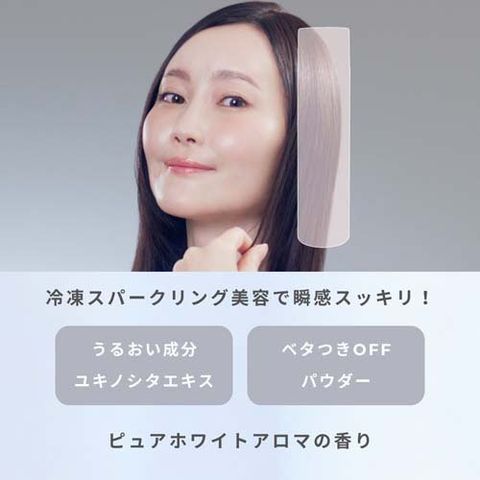 ●冷凍ミスト美容でぱちぱちはじける冷凍泡が頭皮と髪をキュッと整え、頭皮のかゆみを抑え、サロン帰りのように軽やかにまとまる。白くならず、パサつかないうるさら質感へ。冷感がつづく。