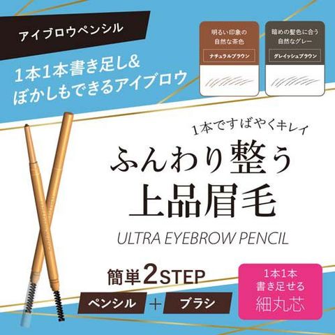 ●誰でも使いやすいペンシルとぼかしに使えるブラシの2STEPで完成。擦っても落ちにくく、1本1本書き足せる細丸芯。