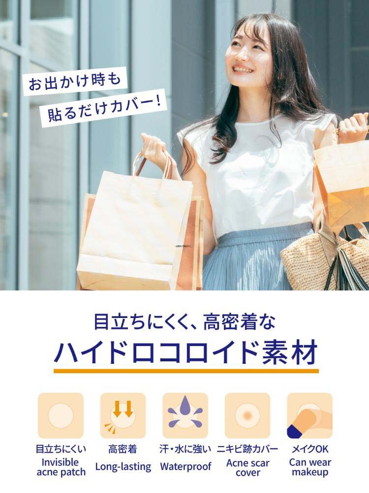 ●こだわり成分を配合した、ハイドロコロイド素材のプレミアムポイントパッチ。お出かけ時も気になるところに貼るだけでカバー・保護します