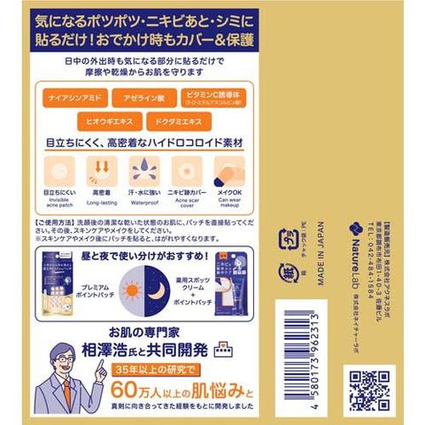 ●こだわり成分を配合した、ハイドロコロイド素材のプレミアムポイントパッチ。お出かけ時も気になるところに貼るだけでカバー・保護します