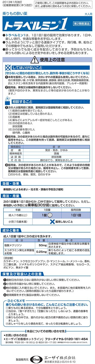 ●トラベルミン1は、1日1回1錠の服用で効果があります。1日中、楽しい旅行、快適な移動をお手伝いします。