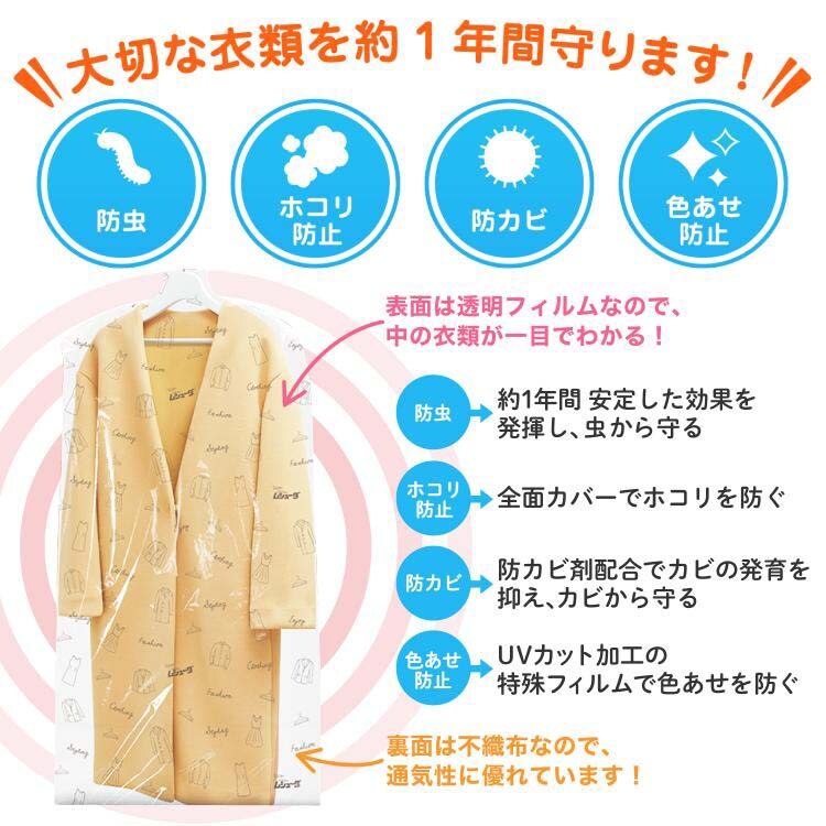 【ムシューダ 衣類 防虫カバー コート・ワンピース用 防虫剤 防カビ剤配合 1年間有効の商品詳細】