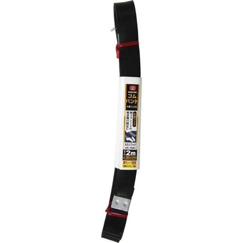 | 長さ:約2m。幅:約20mm。片側フック付き(Aカンフック)。片側コの字金具付き。(材質)ゴム。金属。 |