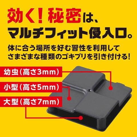 ●大型・小型ゴキブリにかかわらず体にフィットする特殊構造で引き寄せる。
