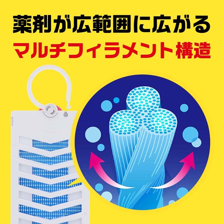 ●マルチフィラメント構造:1本1本の繊維を編みこんだネットで空気と接する面が多いため、薬剤が最初から最後まで広がり、効果を発揮。