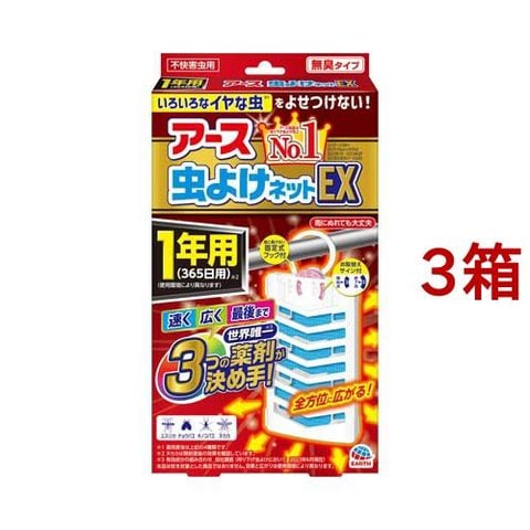 アース 虫よけネット EX ベランダ用 1年用 虫除け 吊るす 玄関 (1個入*3箱セット)