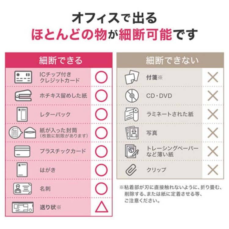 ●カード類やホッチキス付の書類も細断OK