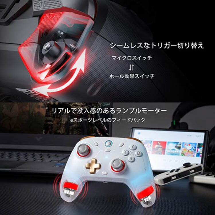 | 英語ブランド名:GameSir 製品タイプ:無線/有線ゲームコントローラー 接続方法:無線:Bluetooth 5.3、2.4GHzドングル/有線:USB Type-C to Type-A 対応デバイス(有線):Switch (携帯/テーブルモード及びSwitch Liteには別途USB Type C アダプターが必要)、Windowsのパソコン、iOS/Androidデバイス(別途OTGアダプターが必要) 対応デバイス(無線 Bluetooth):Switch、SwitchLite、iOS/Androidデバイス、Windows PC、2.4Ghzドングル:Windows PC、Switch 対応OS:Windows 10以降、Android 8以降、iOS 13以降 背面ボタン:2個 モーター:2個 ランブルモーター ジャイロ:あり(Switch対応) ソフトウェア/アプリ:GameSir Connect (Windows PC)、GameSir APP (スマートフォン) インプットモード(PC):有線:Xinput 無線(USBドングル):Xinput 無線(Bluetooth):DS4 製品サイズ:156×103×63mm 製品重量:約229g 動作時間:約8時間 充電時間:約3時間 電池:860mAh/リチウムイオン電池内蔵 使用温度範囲:0~+40度 保管温度範囲:0~+40度 セット内容:本体×1、充電台×1、USBケーブル×1、無線ドングル×1、マニュアル×1 |