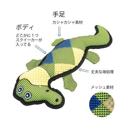 ●メッシュ生地と凹凸テクスチャーを組み合わせた、体長約40cmのBIGなワニ型犬用おもちゃです。