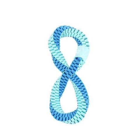 ●丈夫なナイロンテープを2重の輪つなぎのように編み、さらに「無限」を表すインフィニティ型に捻りを加えた不思議な形状の犬用おもちゃです。