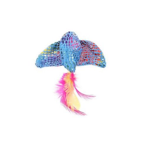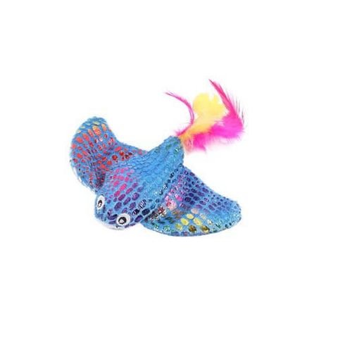 ●猫の狩猟本能を刺激する、お魚モチーフのフェザー付きキャットトイです。
