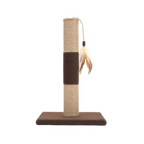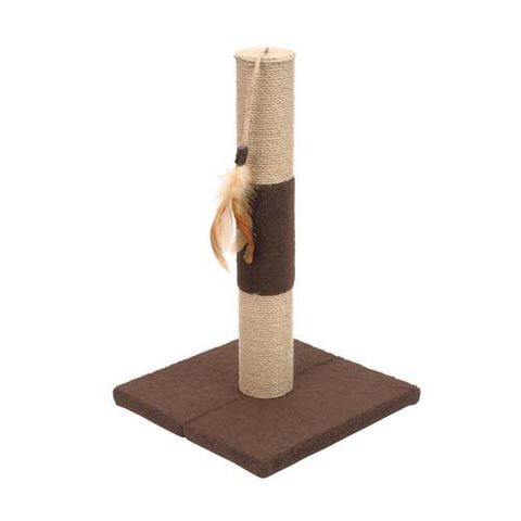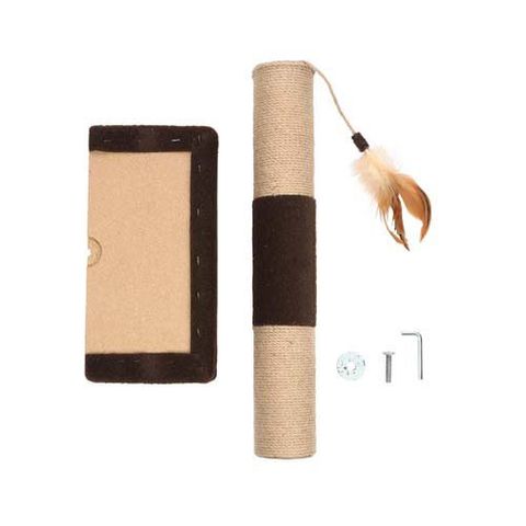 ●直径7.5cmのしっかりとしたポールに麻ロープが巻いてあります。ポールのてっぺんから羽根のおもちゃが吊り下げられており、爪とぎと遊びを同時に楽しめます。