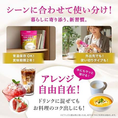 ・本品にはビフィズス菌が生きたまま入っています。ビフィズス菌は熱に弱いため、40度までのご利用をお勧めします。