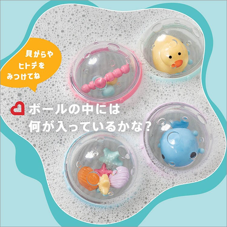 ●生きものたちが泡の中でくるくる泳ぐ、小さな手でもつかみやすいバブルボール。