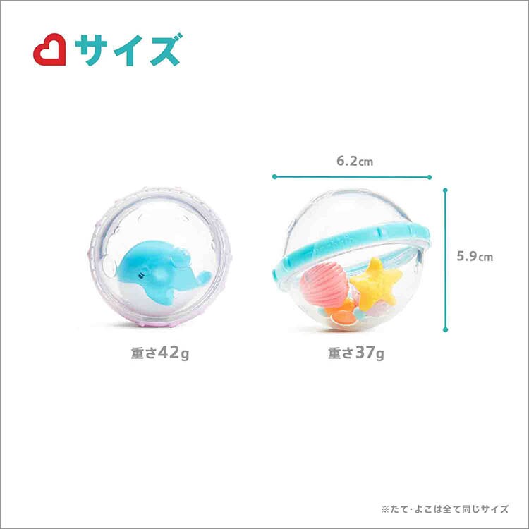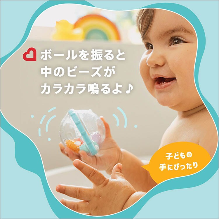 ●ぷかぷか浮かべたり、振ってカラカラ音を鳴らして遊べます。