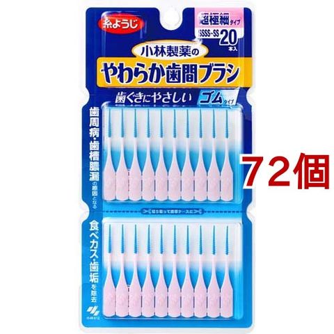 やわらか歯間ブラシ 超極細タイプ SSSS~SSサイズ 歯ぐきにやさしいゴムタイプ (20本入*72個セット)