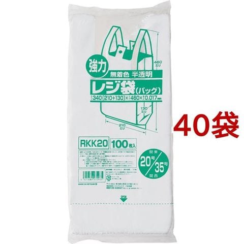 ジャパックス 業務用強力レジ袋 半透明 (東20号・西35号) RKK20 厚み:0.017mm (100枚入*40袋セット)