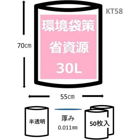 【ジャパックス 環境袋策 ポリ袋 半透明 30L KT58 厚み:0.011mmの商品詳細】
